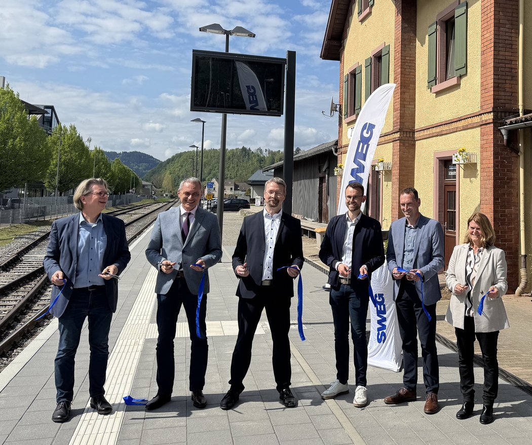 Der barrierefreie Ausbau sowie die Verlängerung und Modernisierung der Bahnsteige an allen Station auf der Harmersbachtalbahn durch die SWEG Schienenwege GmbH ist abgeschlossen. Am Mittwoch, 23. April 2025, wurden die Anlagen am Bahnhof in Zell am Harmersbach stellvertretend für alle fertiggestellten Bahnsteige in diesem Projekt symbolisch in Betrieb genommen.